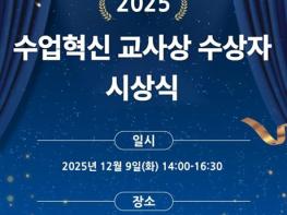 교육부는 한국교육방송공사(사장 김유열)와 함께 12월 9일, 서울 동대문 노보텔 앰배서더에서 수상자와 가족 등이 참석한 가운데 2025년 '올해의 수업 혁신 교사상' 시상식을 개최한다. 지난해에 이어 두