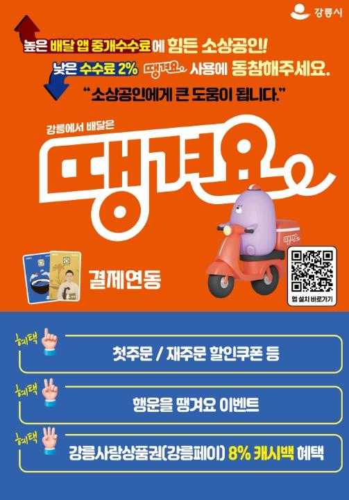홍선옥 소상공인과장은 “이번 강릉페이와 땡겨요(배달앱) 결제 연동은 시민들에게 더 많은 혜택을 제공하는 동시에, 소상공인의 경영 부담을 줄이는 데 큰 도움이 될 것”이라고 말했다.