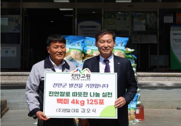 [한국제일신문, 김성관기자] ㈜명일 김오식 대표는 11일, 전북자치도 진안군에서 생산된 쌀 4kg 125포대(총 500kg 상당)를 대전광역시에 위치한 사회복지시설 자모원에 기부했다.