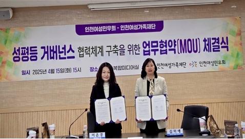(재)인천광역시여성가족재단은 인천여성민우회와 지난 4월 15일 인천여성가족재단에서 양 기관의 성평등 거버넌스 협력체계 구축을 위한 업무협약을 체결했다.