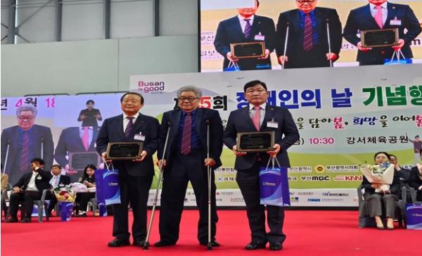 [한국제일신문, 김성옥기자] 부산광역시의회 복지환경위원회 박희용의원(부산진구1, 국민의힘)은 금일 18일 강서체육공원에서 열린 ‘제45회 장애인의 날 기념행사’에서 장애인 복지 향상과 권익 증진에 기여한 공로를 인정받아 장애인 복지대상을 수상했다.