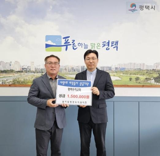 [한국제일신문, 신정수기자] 평택시 용이동에 있는 평택우리교회가 지난 17일 관내에 어려운 이웃을 위해 사용해달라며 용이동 행정복지센터에 성금 150만 원을 기부했다.