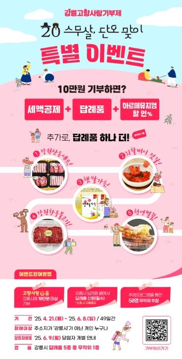 이번 이벤트는 유네스코 인류무형문화유산 선정 20주년을 맞아, 2025 강릉단오제의 주제인 ‘스무살, 단오’에 발맞춰 고향사랑기부제에 참여한 기부자에게 감사의 마음을 전하고자 마련됐다.