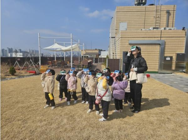 도청기후학교는 유아를 대상으로 도청 잔디정원, 하늘정원 등을 탐방하며 자연을 관찰하고, 태양안경을 활용한 태양 관찰, 탄소중립 딱지치기 등 놀이와 체험을 통하여 환경의 소중함을 느끼도록 구성된 교육 프로그램이다.