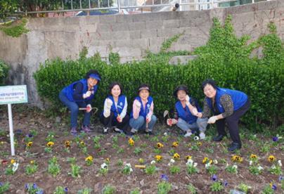 서구 바르게살기운동 초장동위원회,화단 정비와 함께 봄맞이 초화 식재