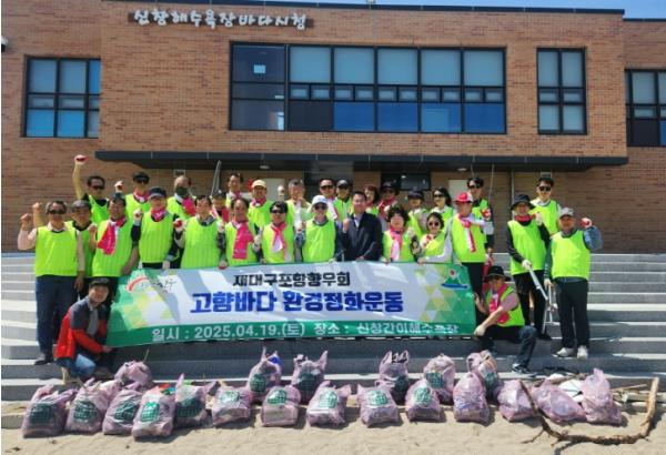 재대구포항향우회(회장 김석종)가 지난 19일 고향 포항을 찾아 장기면 신창 해수욕장에서 환경 정화 활동을 펼치고 구룡포 전통시장에서 장보기 행사를 진행했다.