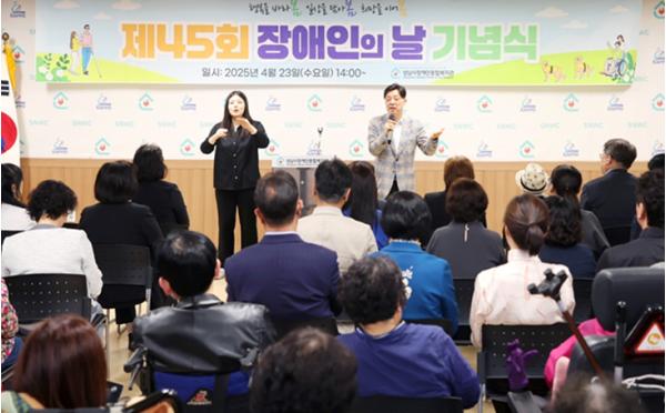 안광림 부의장은 “올해로 마흔다섯 번째를 맞이한 장애인의 날은 단순한 기념일이 아니라, 누구도 소외되지 않고 차별받지 않는 사회를 만들기 위한 우리의 의지를 보여주는 뜻깊은 날”이라며, “오늘 기념식에서 표창을 수상하신 분들께 모두가 행복하게 살아가는 성남시를 위해 노력해 주심에 감사의 말씀드린다.”라고 말했다.