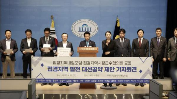 국회연구단체인 ‘접경지역 내일포럼’과 ‘접경지역시장군수협의회’는 이날 기자회견을 열어 접경지역 발전을 위해 5대 분야 22개 공통과제를 차기 대통령 후보들에게 공식적으로 제안했다.