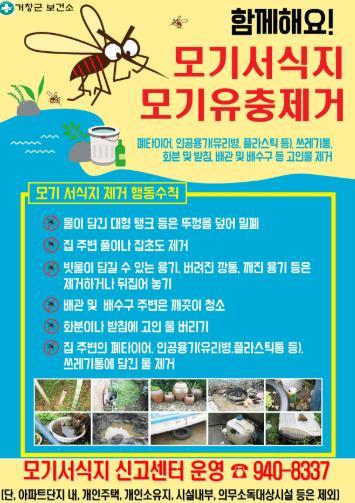 군은 모기 매개 감염병 예방을 위해 모기(유충)서식지 신고센터를 운영하는 등 방역 활동을 강화하고, 군민을 대상으로 모기 매개 감염병에 대한 위험성과 예방수칙을 알리는 홍보 활동도 확대하고 있다.