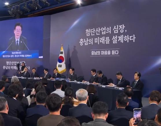 이 대통령은 "그런 점에서 최근 충남 대전 통합 논의가 있고, 법안도 일부 낸 것 같은데 그게 바람직하다고 생각한다"며 "충남 대전이 모범적으로 통합해 보면 어떨까 하는 생각을 한국 국정을 책임지는 사람으로 갖고 있다"고 말했다.