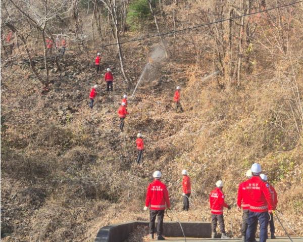 특히, 입산자 실화를 발화원인으로 한 산불발생 상황을 가정하여, 초기 상황 전파부터 진화 명령 하달, 진화자원 투입까지 산불 대응 단계별 전 과정을 산불 진화대가 숙달하도록 했다.