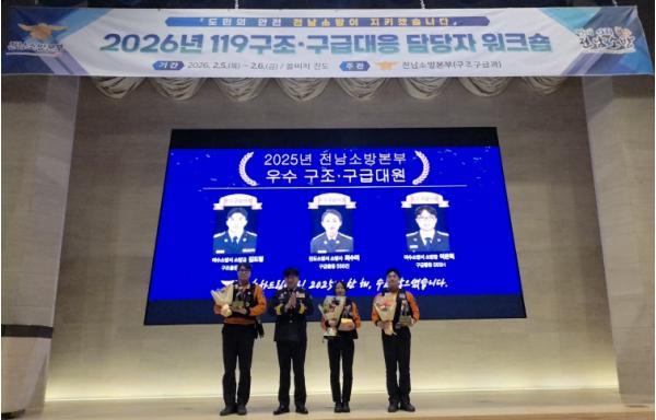[한국제일신문, 윤진성기자] 여수소방서는 지난 2월 5일 쏠비치 진도에서 전라남도 소방본부 주관으로 열린 2026년 구조·구급대응 업무 담당자 워크숍에 참석해, 별도로 진행된 『2025년 우수 구조‧구급대원 시상식』에서 수상의 영예를 안았다.