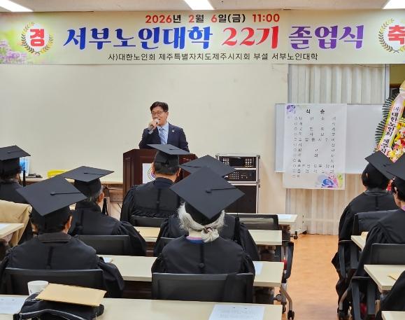 [한국제일신문, 김성옥기자] 현원돈 제주시 부시장은 2월 6일 제주시 서부노인복지회관에서 열린 제22기 서부노인대학 졸업식에 참석해 어르신들께 존경의 마음을 전했다.