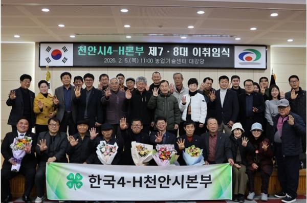 [한국제일신문, 김성옥기자] 천안시4-H본부는 지난 2월 5일 천안시농업기술센터 대강당에서 김양섭 농업기술센터소장, 농업인단체장 및 4-H회원이 참석한 가운데 ‘천안시4-H본부 제7·8대 회장 이·취임식’을 개최했다고 밝혔다.