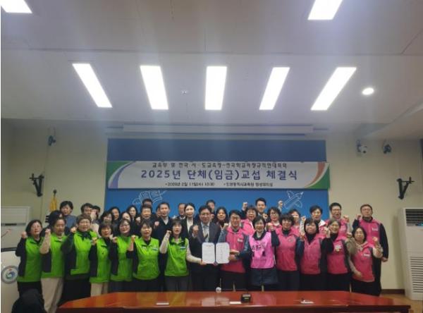 [한국제일신문, 김성옥기자] 울산광역시교육청을 포함한 전국 17개 시도교육청이 11일 인천광역시교육청에서 전국학교비정규직연대회의와 ‘2025년 집단 임금 교섭 체결식’을 열었다.