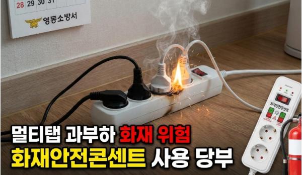 영동소방서(서장 이도형)는 최근 가정 내 전력 사용량 증가로 인한 멀티탭 과부하 화재가 잇따르고 있다며, 화재안전콘센트(자동소화 멀티탭) 사용과 안전 수칙 준수를 당부했다.