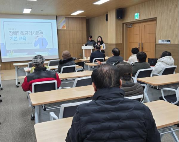 이어 진행된 기본교육에서는 근무 시 유의사항, 직장 내 안전수칙, 장애인일자리 참여자의 역할과 권리 등에 대한 교육이 이뤄졌다.