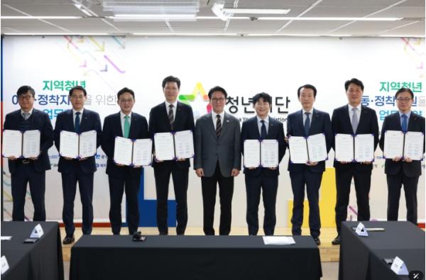이번 협약은 수도권에서 지역으로 이동한 청년들에 대해 지역은행들이 저금리 대출 등 금융혜택을 지원함으로써 청년의 지역정착 기반을 마련해 주기 위한 사업으로서, 청년재단과 7개 은행(농협은행, 부산‧대구‧경남‧광주‧전북‧제주은행)이 협약식을 맺었다.