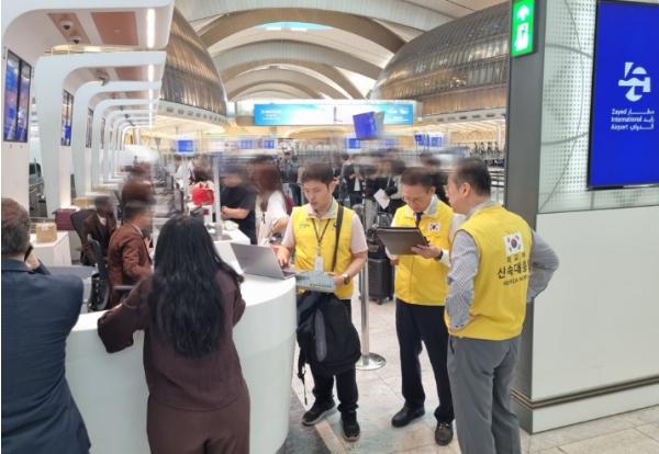 권기환 前 글로벌다자외교조정관과 이태우 前 국제사이버협력대사를 팀장으로 한 외교부・경찰청 합동 신속대응팀(12명)이 사전에 파견됐으며, 주아랍에미리트 대사관과 긴밀히 협력하여 탑승 수요 조사부터 전세기 출발까지 전 과정에서 우리 국민들의 신속하고도 안전한 출국을 지원했다.