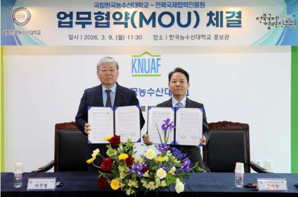 [한국제일신문, 김성옥기자] 한국농수산대학교는 3월 9일 오전 11시 한농대 본관에서 전북국제협력진흥원과 국제농업교육 협력 등을 위한 업무협약을 체결했다.