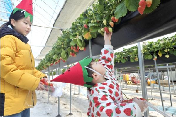 이날 참가한 부모와 20여 명의 아이들은 하우스 딸기밭에서 탐스럽게 익은 딸기를 직접 수확하며 즐거운 시간을 보냈다.