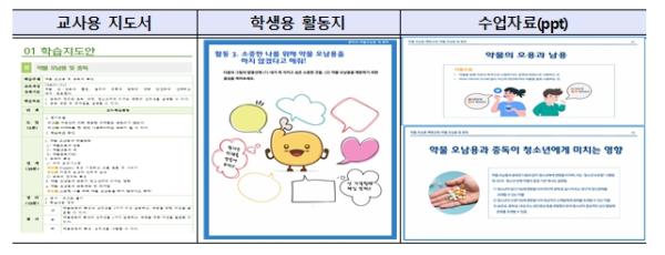 또한, 현장 활용도를 높이기 위해 교사용 지도서 외에도 학교에서 다양하게 사용할 수 있는 학생용 활동지(워크북), 수업자료(동영상, ppt) 등을 함께 제공한다. 지도서와 자료들은 교육부 학생건강정보 센터 누리집 내 자료실과 시도교육청 누리집 등에서 내려받아 활용할 수 있다.