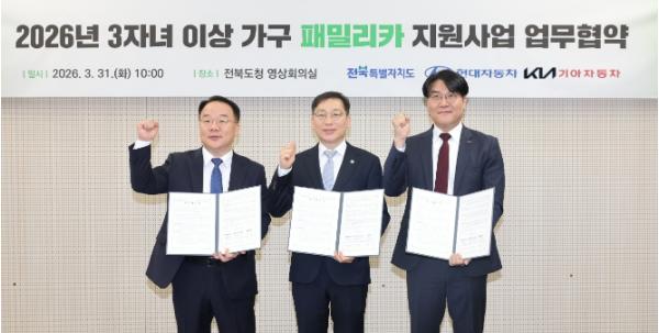 [한국제일신문, 윤진성기자] 전북특별자치도가 현대자동차·기아와 손잡고 자녀 3명 이상 다자녀가구를 위한 패밀리카 구입비 지원사업을 전국 최초로 본격 가동한다.