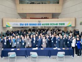 전라남도의회는 29일 전남도청 왕인실에서 전남·광주 행정통합과 관련해 도의원과 시·군의회 의원 등이 참석한 가운데 의견수렴 간담회를 개최하고, 행정통합 추진 과정에서 제기되는 다양한 현장의 의견과