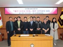 울산 남구의회 김장호 의원은 28일 의사당 3층 상황실에서 삼산동 음식점 운영자들의 제안으로 달삼로 삼겹살 특화거리 조성을 위한 간담회를 개최했다. 이날 간담회에는 상인들을 비롯해 김동칠 시의원과