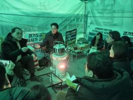 경기도의회 교육기획위원회 안광률 위원장(더불어민주당, 시흥1)은 27일 오후, 경기도교육청 1층 외부에 설치된 ‘기간제 사서교사 경력 인정 문제 해결 촉구 천막 농성장’을 방문해 교사들의 목소리를 직