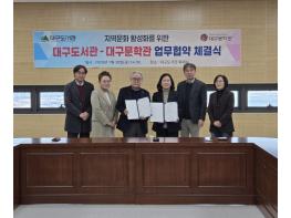 대구도서관과 대구문학관은 시민을 위한 독서문화 분야 협력을 강화하고 상호 발전을 도모하기 위해 1월 30일 오후 2시, 대구도서관 회의실에서 업무협약을 체결했다.이날 협약식은 양 기관 대표 및 관계자