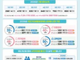 영등포구가 2026년 기준 중위소득이 인상되고 기초생활보장제도 수급자 선정 기준이 완화되면서 기초생활보장 급여 지원을 확대한다고 밝혔다.2026년도 기준 중위소득은 1인 가구 기준 256만 4천 원으로, 지