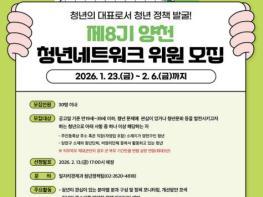양천구는 청년이 직접 정책을 발굴하고 실행방안을 제안하는 청년 중심 소통 플랫폼 ‘제8기 양천 청년네트워크’ 위원을 2월 6일까지 모집한다고 밝혔다.‘양천 청년네트워크’는 취업, 주거, 복지 등 청년