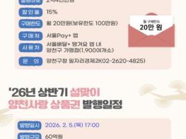 양천구는 설 명절을 맞아 지역 상권에 활력을 불어넣고 구민의 생활비 부담을 덜기 위해 ‘양천사랑상품권’과 ‘양천땡겨요상품권’을 발행한다고 28일 밝혔다.먼저 ‘양천사랑상품권’은 소비자에게는 할