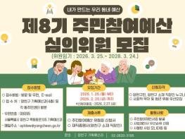 양천구는 주민의 아이디어가 예산에 반영되고 실제 사업 실행으로 이어지는 ‘주민참여예산제도’를 함께 이끌어갈 ‘제8기 주민참여예산 심의위원’을 2월 20일까지 모집한다고 밝혔다.모집 인원은 총 80명