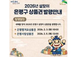 서울 은평구는 설 명절을 맞아 오는 2월 첫째 주에 은평땡겨요상품권과 은평사랑상품권을 발행한다고 밝혔다.은평땡겨요상품권은 내달 3일 오전 10시부터 1억 5천만 원 규모로 판매한다. 은평사랑상품권은