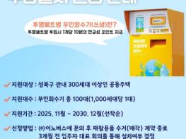 서울 성북구가 주민의 투명페트병 분리배출 편의를 높이기 위해 무인회수기 확대에 나섰다.올해 2월 월곡1동 생명의전화 종합사회복지관 등 4개소에 투명페트병 무인회수기를 추가 설치해 기존 16대에서 20