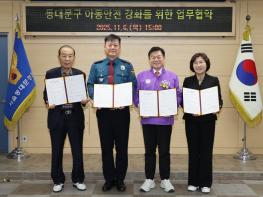 서울 동대문구는 6일 동대문경찰서 3층 회의실에서 동대문경찰서, 서울동부교육지원청, 재향경우회와 함께 ‘아동 안전 강화를 위한 업무협약’을 체결했다고 밝혔다.이번 협약은 최근 청량리 지역에서 잇달