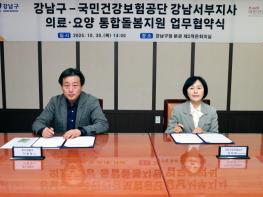 꿈이 모이는 도시, 미래를 그리는 강남구가 10월 30일 국민건강보험공단 강남서부지사와 ‘의료·요양 통합돌봄지원체계 구축’을 위한 업무협약(MOU)를 체결했다.이번 협약은 내년 3월 시행 예정인'의료·요