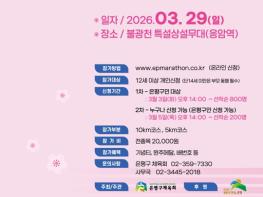 서울 은평구는 다음달 29일 벚꽃 명소인 불광천변에서 ‘2026. 은평 불광천 벚꽃 마라톤대회’를 개최한다고 밝혔다.이번 대회는 지난해에 이어 불광천 벚꽃축제 ‘은평의 봄’과 연계해 진행된다. 참가 접