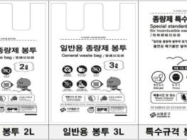 서대문구가 3월부터 소용량 일반용 종량제 봉투 2L, 3L 및 특수 규격(마대) 봉투 10L를 신규 판매한다.기존 종량제 봉투는 5L가 가장 작았고, 화분이나 유리병 등 불연성 폐기물을 담는 특수 규격(마대) 봉