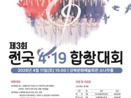 서울 강북구가 오는 4월 11일 오후 3시 강북문화예술회관 소나무홀에서 '제3회 전국 4·19 합창대회'를 개최한다.이번 대회는 제66주년 4·19혁명을 기념해 합창을 통해 4·19혁명 정신을 되새기고, 민주주의의