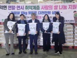 한국수력원자력㈜ 청평수력발전소가 가평군 설악면 취약계층을 위해 3천만원 상당의 쌀 나눔에 나섰다.가평군 설악면에 따르면 청평수력발전소는 지난 20일 설악면 취약계층에게 전달해 달라며 가평쌀 900포