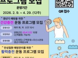 양평군은 지역주민의 건강생활 실천과 신체활동 증진을 위해 1월 22일부터 2월 3일까지 ‘신체활동 프로그램’ 참여자를 모집한다고 밝혔다.‘건강충전·활력충전’은 양평군 용문건강생활지원센터에서 운영