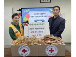 의정부시 고산동주민센터는 3월 11일 고산동 적십자봉사회가 수제 빵 200개를 지역 아동을 위해 전달했다고 밝혔다.이날 전달식은 주민센터에서 열렸으며, 이미애 회장을 포함한 적십자 봉사원 7명이 참석했
