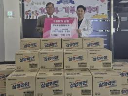 양주시 회천2동 연세원탑정형외과가 지난 21일 회천2동 행정복지센터에 라면 1,500개(약 120만 원 상당)를 기부했다.전달된 라면은 경기사회복지공동모금회를 통해 회천2동 내 저소득 취약 가구에 지원될 예