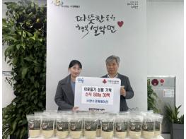 ㈜한수코퍼레이션은 최근 가평군 설악면 행정복지센터를 방문해 관내 취약계층을 위해 선식 500g들이 30팩을 기탁했다.사회적기업이자 여성기업인 ㈜한수코퍼레이션은 로컬푸드를 기반으로 농가 소득 보전과