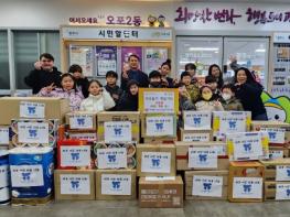 광주시 양벌동에 위치한 버니베어 전인교육학원 학생들은 27일 오포2동 행정복지센터를 방문해 주변의 어려운 이웃을 위한 식료품을 전달했다. 이날 기탁된 물품은 라면과 햇반 등으로 학생들이 직접 뜻을