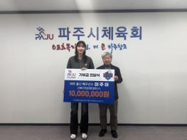 파주가 낳은 배구 인기인(스타)이자 아이비케이(IBK)기업은행 알토스 소속 이주아 선수가 고향 후배들을 위해 1천만 원을 기부하며 남다른 고향 사랑을 전했다.파주시체육회는 지난 23일 체육회 회의실에서
