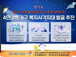 경기도가 1월부터 3월까지 가스요금체납 등 위기 정보가 발견된 도내 4만 3백 명을 대상으로 복지사각지대 발굴에 나선다. 도는 빅데이터를 통해 예측한 위기가구가 실제 위기에 처했는지 확인하고 필요한